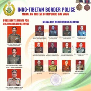 महानिदेशक, भारत तिब्बत सीमा पुलिस और समस्त बल परिवार ने सभी पदक प्राप्तकर्ताओं को शुभकामनाएं दी हैं।