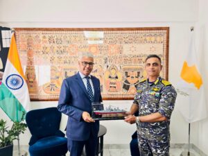 आगमन पर, कमांडिंग ऑफिसर, कैप्टन सचिन कुलकर्णी ने साइप्रस में भारत के उच्चायुक्त श्री मनीष और साइप्रस नौसेना के कमांडर, कमांडर मिनास सोलोमोनाइड्स से मुलाकात की।