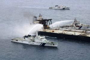 भारतीय तटरक्षक बल (ICG) समुद्र में पर्यावरणीय आपदाओं के खिलाफ देश की अग्रिम पंक्ति की रक्षा के रूप में भी काम करता है, जो तेल रिसाव, रासायनिक खतरों और समुद्री प्रदूषण की घटनाओं पर तेजी से प्रतिक्रिया करता है। विशेष प्रदूषण नियंत्रण पोतों- समुद्र प्रहरी, समुद्र पहरेदार और समुद्र पावक से लैस ICG प्रदूषकों को रोकने, ठीक करने और बेअसर करने के लिए टियर-I शमन रणनीतियों को तैनात करता है, इससे पहले कि वे अपरिवर्तनीय पारिस्थितिक क्षति का कारण बनें।