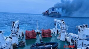 सिंगापुर के झंडे वाला कंटेनर जहाज एमवी वान हाई 503, जिसमें 09 जून 2025 को केरल तट पर आग लग गई थी, भारतीय अनन्य आर्थिक क्षेत्र (ईईजेड) के भीतर बहता हुआ जारी है। भारतीय तटरक्षक बल (ICG) के जहाज और विमान गहन अग्निशमन अभियान में लगे हुए हैं, जबकि जहाज बेयपोर, केरल से लगभग 42 समुद्री मील दूर दक्षिण-पूर्व दिशा में बह रहा है।