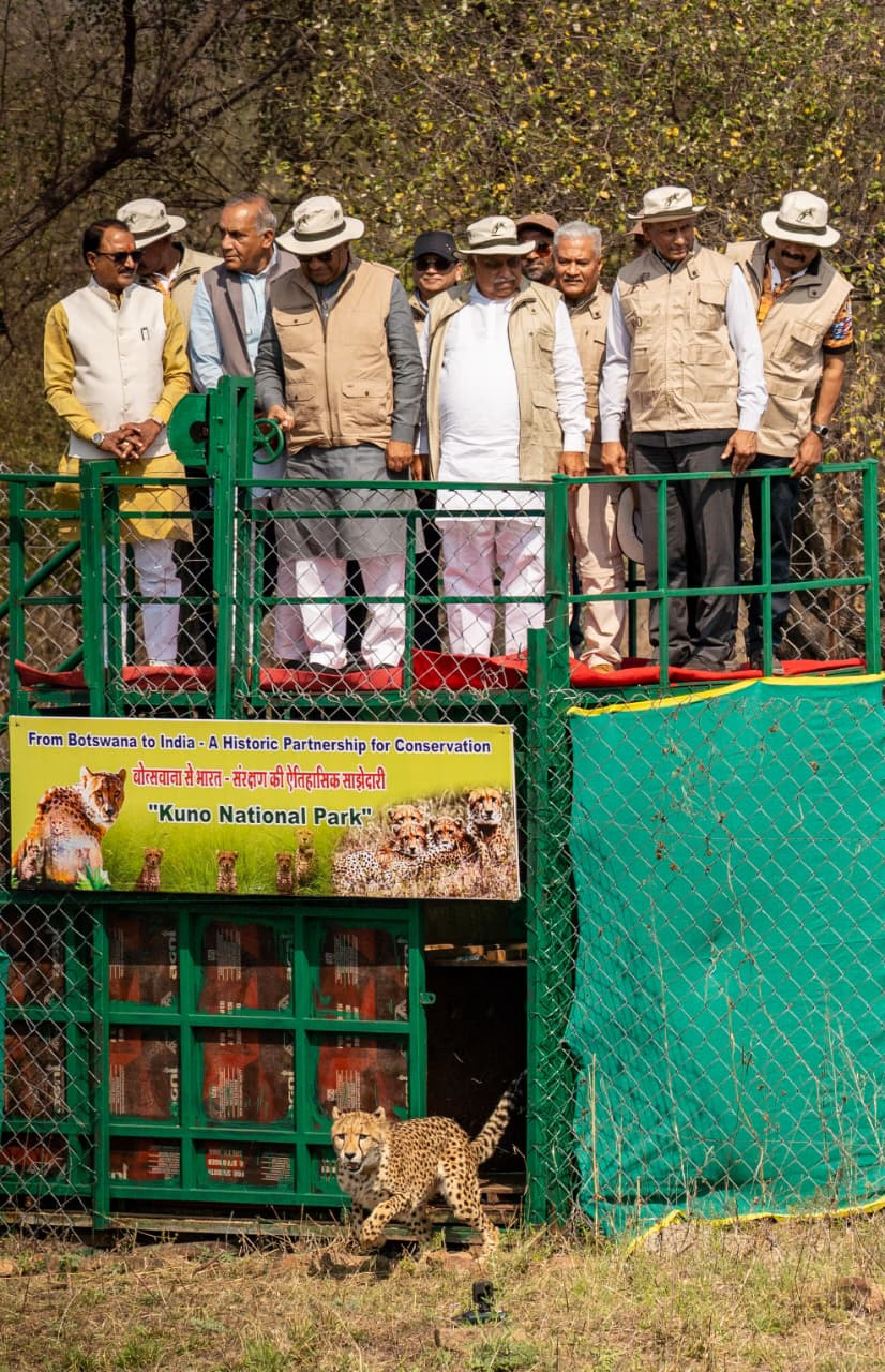 केन्द्रीय वन एवं पर्यावरण मंत्री यादव ने बोत्सवाना से आये 9 चीतों में से तीन चीतों को प्रतीकात्मक रूप से क्वारंटीन के लिए बनाये गये बाड़ों में रिलीज किया। भारत में चीतों की पुनर्बसाहट के लिए तीन वर्ष पूर्व शुरू हुए चीता प्रोजेक्ट के तहत बोत्सवाना से लाये गये 9 चीते शनिवार को सुबह लगभग 9.30 बजे कूनो नेशनल पार्क पहुंचे। वायुसेना के तीन हैलीकॉप्टर से ग्वालियर एयरपोर्ट से इन चीतों को कूनो नेशनल पार्क में एयरलिफ्ट किया गया। इन चीतों में 6 मादा और 3 नर चीते शामिल है। केन्द्रीय वन एवं पर्यावरण मंत्री ने चीता रिलीज कार्यक्रम बाद के बोत्सवाना से आये चीता विशेषज्ञ दल से भेंट कर चर्चा की, साथ ही उन्हें कूनो नेशनल पार्क की ओर से स्मृति चिन्ह भेंट भी किये।