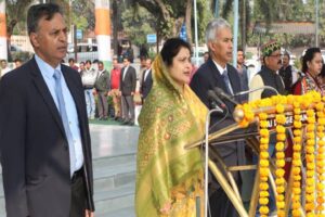 वर्ष 2026 के जनवरी माह के प्रथम शासकीय कार्य दिवस पर गुरूवार सुबह मंत्रालय स्थित सरदार वल्लभ भाई पटेल पार्क में राष्ट्र-गीत “वंदे-मातरम” एवं राष्ट्र-गान “जन-गण-मन” का सामूहिक गायन हुआ। इस अवसर पर पुलिस बैंड ने मधुर धुनें प्रस्तुत की। सामूहिक गायन में पिछड़ा वर्ग एवं अल्पसंख्यक कल्याण तथा विमुक्तघुमन्तुअर्द्धघुमन्तु कल्याण राज्य मंत्री (स्वतंत्र प्रभार कृष्णा गौर शामिल हुई।