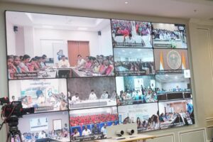 एक करोड़ कन्याओं के लिए इंदिराम्मा साड़ी योजना के औपचारिक शुभारंभ के अवसर पर उपमुख्यमंत्री श्री मल्लू भट्टी विकमरका ने अन्य कैबिनेट साथियों के साथ प्रदेश भर से आए सभी जिलों के कलेक्टरों व महिला संघों के प्रतिनिधियों के साथ वीडियो कॉन्फ्रेंस के माध्यम से संवाद किया। डॉ. बी.आर. अम्बेडकर राज्य सचिवालय।