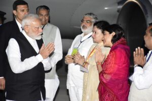 @ गांधीनगर गुजरात :- प्रधानमंत्री नरेन्द्र मोदी जामनगर वायुसेना स्टेशन पहुंचे, जहां उनका गणमान्य व्यक्तियों द्वारा हार्दिक स्वागत किया गया। प्रधानमंत्री का स्वागत करने वालों में मंत्री राघवजी पटेल और मुलुभाई बेरा, सांसद पूनमबेन मादम, जिला पंचायत अध्यक्ष मेबेन गरसर, जामनगर के मेयर विनोद खिमसूरिया, विधायक मेघजी चावड़ा, विधायक रीवाबा जडेजा, विधायक दिव्येश अकबरी, विधायक पंकज जोशी, मुख्य सचिव विकास सहाय, डीजीपी सौरभ पारिजात, वायुसेना ग्रुप कैप्टन केतन ठक्कर, कलेक्टर प्रेमसुख डेलू, जिला पुलिस प्रमुख रमेशभाई मुंगरा और डॉ. विमलभाई कगथारा जैसे गणमान्य व्यक्ति शामिल थे।