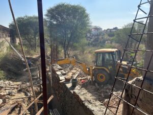 उक्त भूमि पर लगभग दो माह के दौरान अवैध रूप से किए गए फाउंडेशन निर्माण के रूप में हुए अतिक्रमण को शुक्रवार राजस्थान आवासन मण्डल के खण्ड-प्रथम कार्यालय द्वारा जेसीबी मशीन की सहायता से ध्वस्त कर हटाया गया।