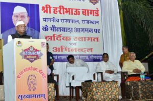 राज्यपाल हरिभाऊ बागडे रविवार को भीलवाड़ा में नगर माहेश्वरी सभा द्वारा आयोजित महेश नवमी महोत्सव 2025 के पावन अवसर पर कवि सम्मेलन के कार्यक्रम को सम्बोधित कर रहे थे।