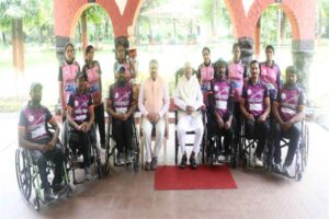 राज्यपाल मंगुभाई पटेल से मंगलवार को मध्यप्रदेश व्हीलचैयर क्रिकेट और दिव्यांग महिला क्रिकेट टीम के सदस्यों ने राजभवन में मुलाक़ात की। राज्यपाल पटेल को दिव्यांग महिला क्रिकेट टीम की कप्तान राधा बढ़गुज्जर ने ‘उमंग कप’ में जीती गई ट्रॉफी भेंट की। राज्यपाल पटेल ने टीम के सदस्यों को इस उपलब्धि के लिए बधाई दी।