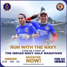 इंडियन नेवी आज 01 फरवरी 2026 को नई दिल्ली में ‘रन विद द नेवी’ टैगलाइन के साथ इंडियन नेवी हाफ मैराथन (INHM) के दूसरे एडिशन को होस्ट करेगी।
